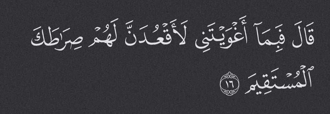 “He said, “For leaving me to stray I will lie in ambush for them on Your Straight Path.”7