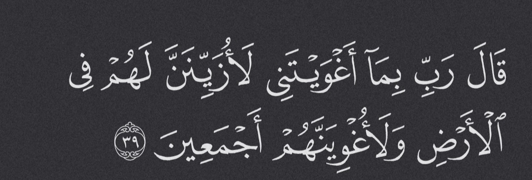 “My Lord! For allowing me to stray I will surely tempt them on earth and mislead them all together,