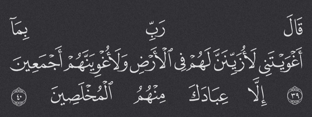 “My Lord! For allowing me to stray I will surely tempt them on earth and mislead them all together,
